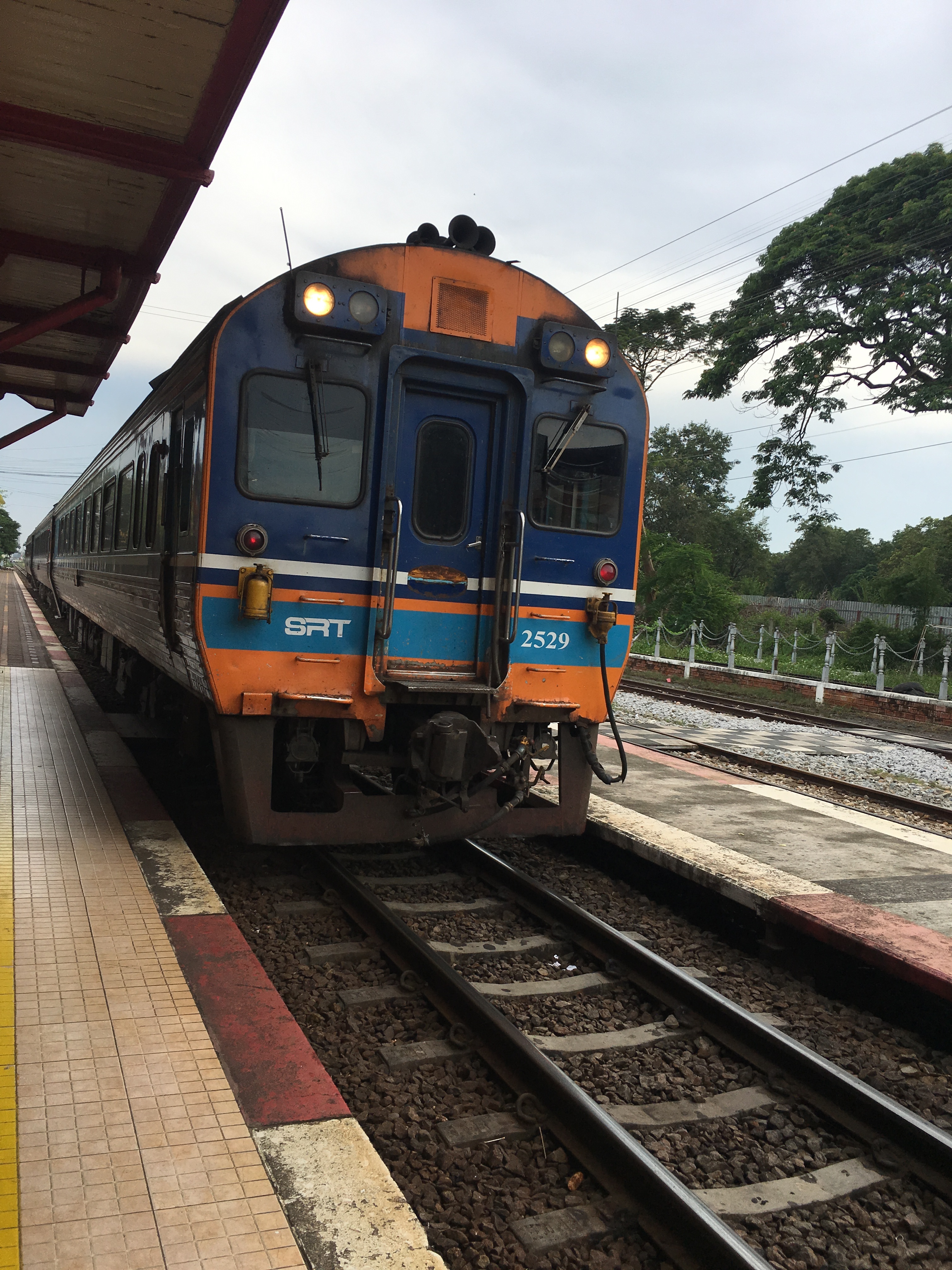 以前から一度は行ってみたかったのですが、列車の旅も面白そうだと思い、今回はタイの国鉄を使うことにしました。(電化されていませんから、ディーゼル列車です)