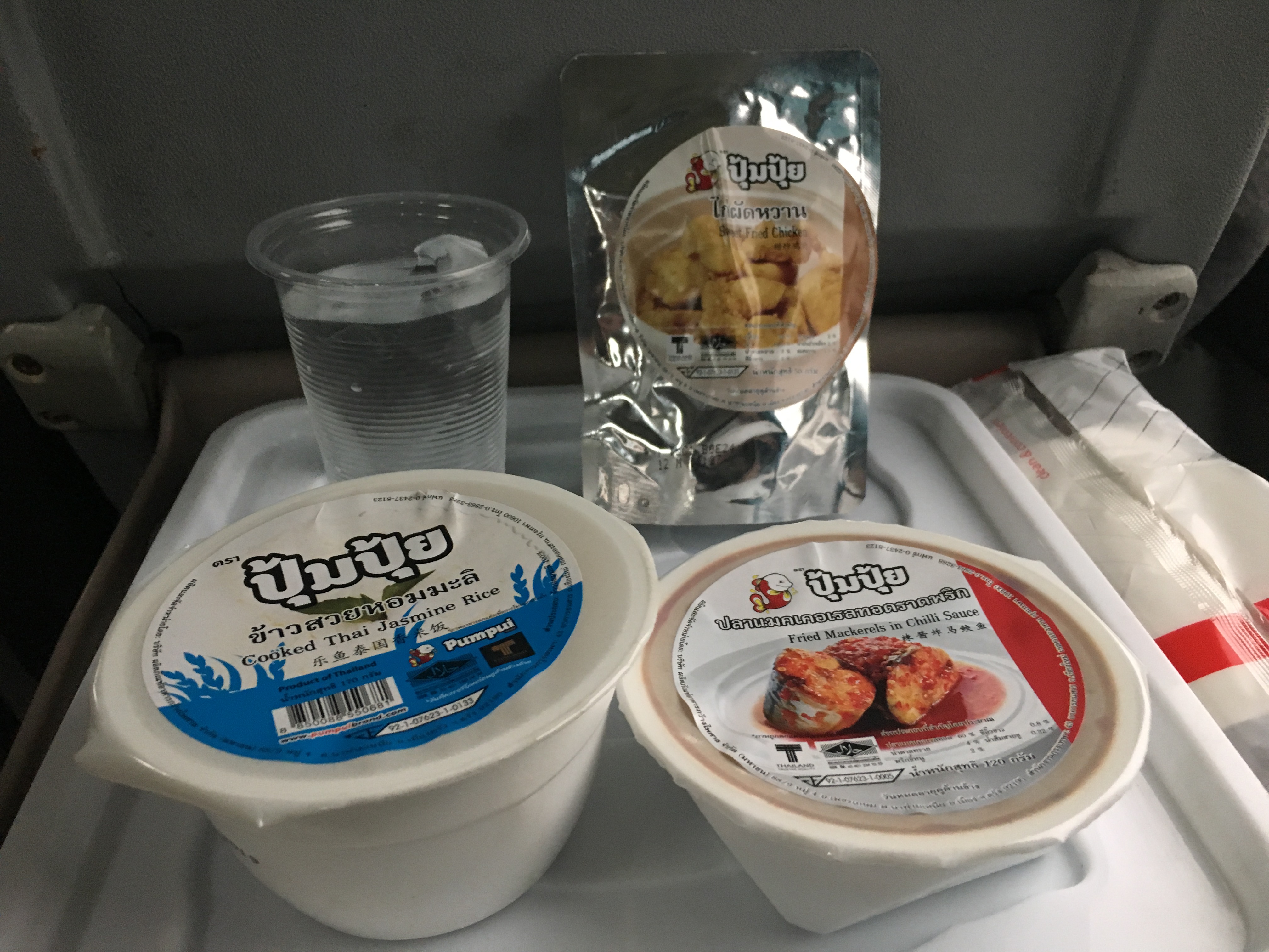 出発してすぐ、コーヒーと菓子パンが配られ、2時間ほどして昼食が出てきました。